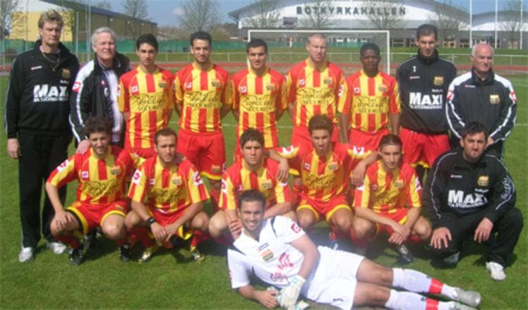 | Färger: | Långrandiga gul-röda tröjor, Röda byxor |