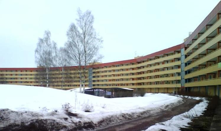Maservallens plan i vinterskrud med den minimala läktaren till vänster, till höger syns Maserhallens brutala betongskepnad.