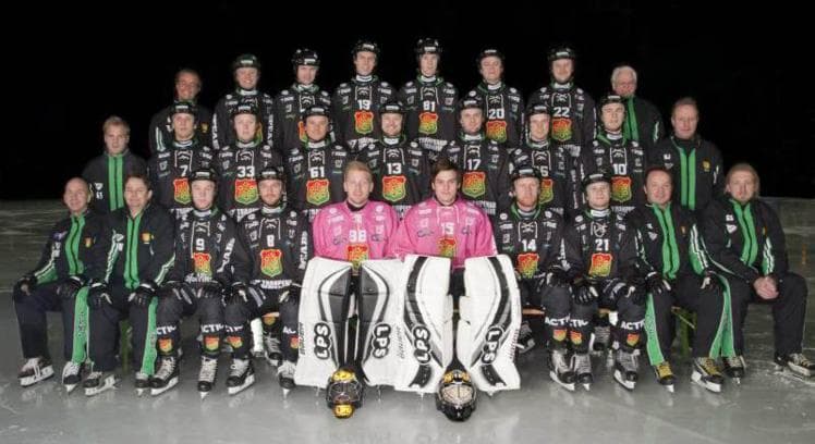 | Färger: | Långrandiga grön-svarta tröjor, svarta byxor |