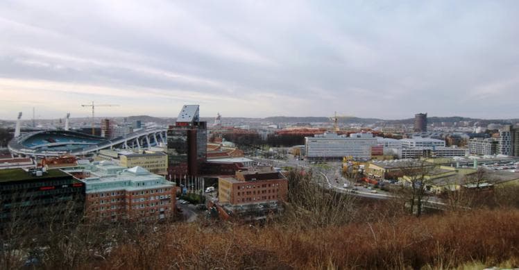 Klassisk Göteborgsutsikt från Snikens kulle ovanför Nya Ullevi.