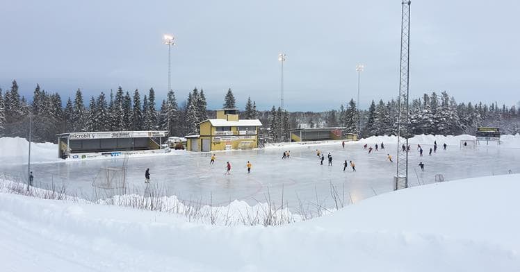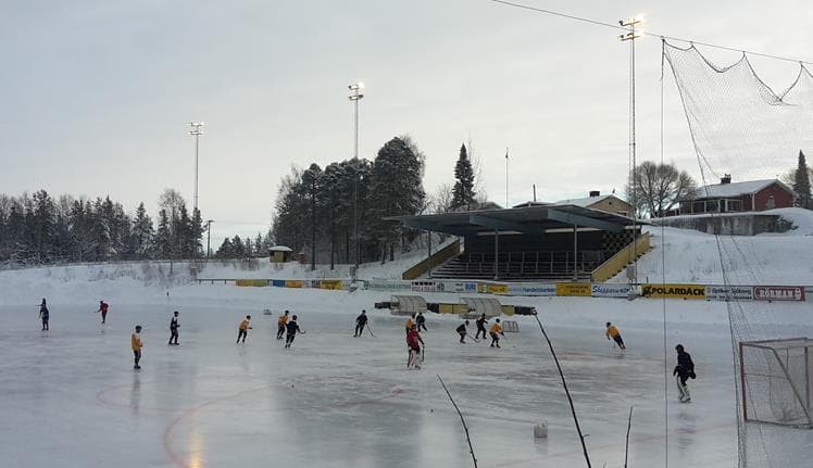 Bruksvallen – den allra vackraste bandyarenan. Här de båda läktarna på norra långsidan.