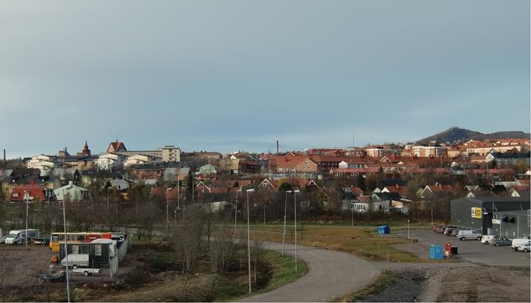 ”…i väster ligger Kirunavaara gruva och i horisonten syns Luossavaara gruva…”