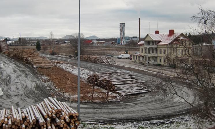 Ljusdal – Sveriges Twin Peaks? Här ett frostbeklätt timmerupplag invid järnsvägsstationen.
