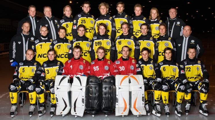 ÖSK bandy spelar till skillnad från syskonklubben ÖSK fotboll i gula tröjor.