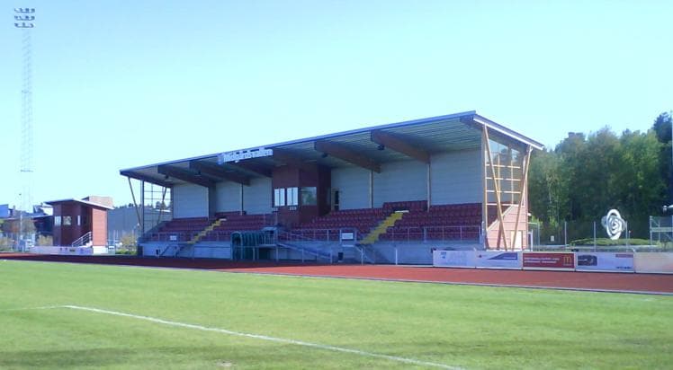 Huvudläktaren på Midgårdsvallen, perfekt avvägd för ett division 1-lag.