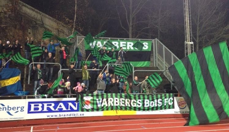 Här sjunger Klacksparken Varberg till en viktig kvalseger mot Oddevold på Rimnersvallen. Foto: Jonas Paulsson.
