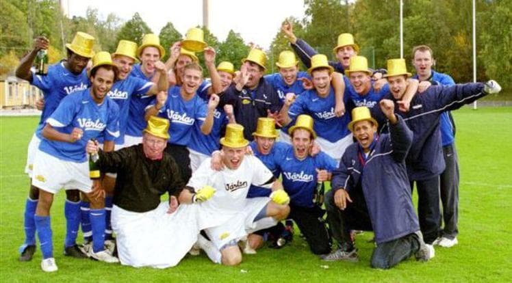 Värtan firar avancemang i sedvanligt fula guldhattar.
