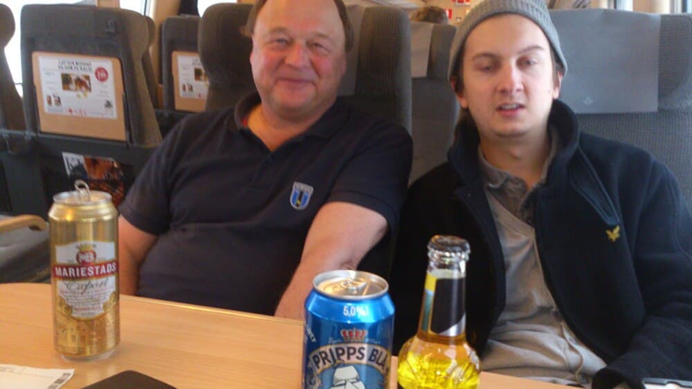 ”Minibuss-gänget samlades strax innan 16.30 utanför halvmiljardsbygget UKK. Förmodligen den yngsta medelåldern genom Västras tider bänkade sig i minibussen till Söderhamn. Halva bussen födda på 80-talet, den andra på 90-. Lovande för återväxten. En viss urinblåsa hos en viss halvfull snubbe blev full mitt i bilkön som vi otippat nog hamnat i. Ont om tid och fast beslutna på att stanna vid Gävle Bro, försökte denne febrilt att få upp fönsterrutan och tömma sig så tillväga. Fönstret visade sig dock fryst igen och desperationen blev allt större hos denne, som till slut tog till en burk och blev lättad på så sätt. Väl i Gävle Bro fick vi andra lätta på blåsorna och snabbt jäkta in i minibussen igen, då vi låg långt efter tidsschemat. Strax härefter hade det något förskjutna avslaget ägt rum och en liten stund senare fick vi rapporter om 1-0.