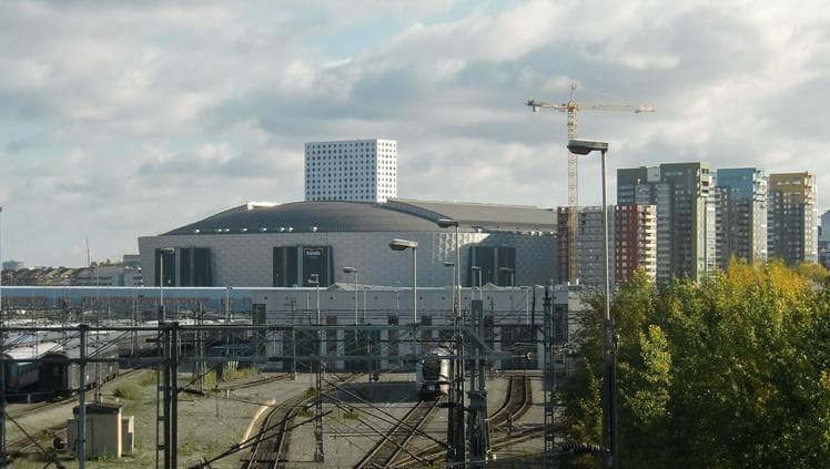 Nationalarenan sedd över Hagalunds bangård.